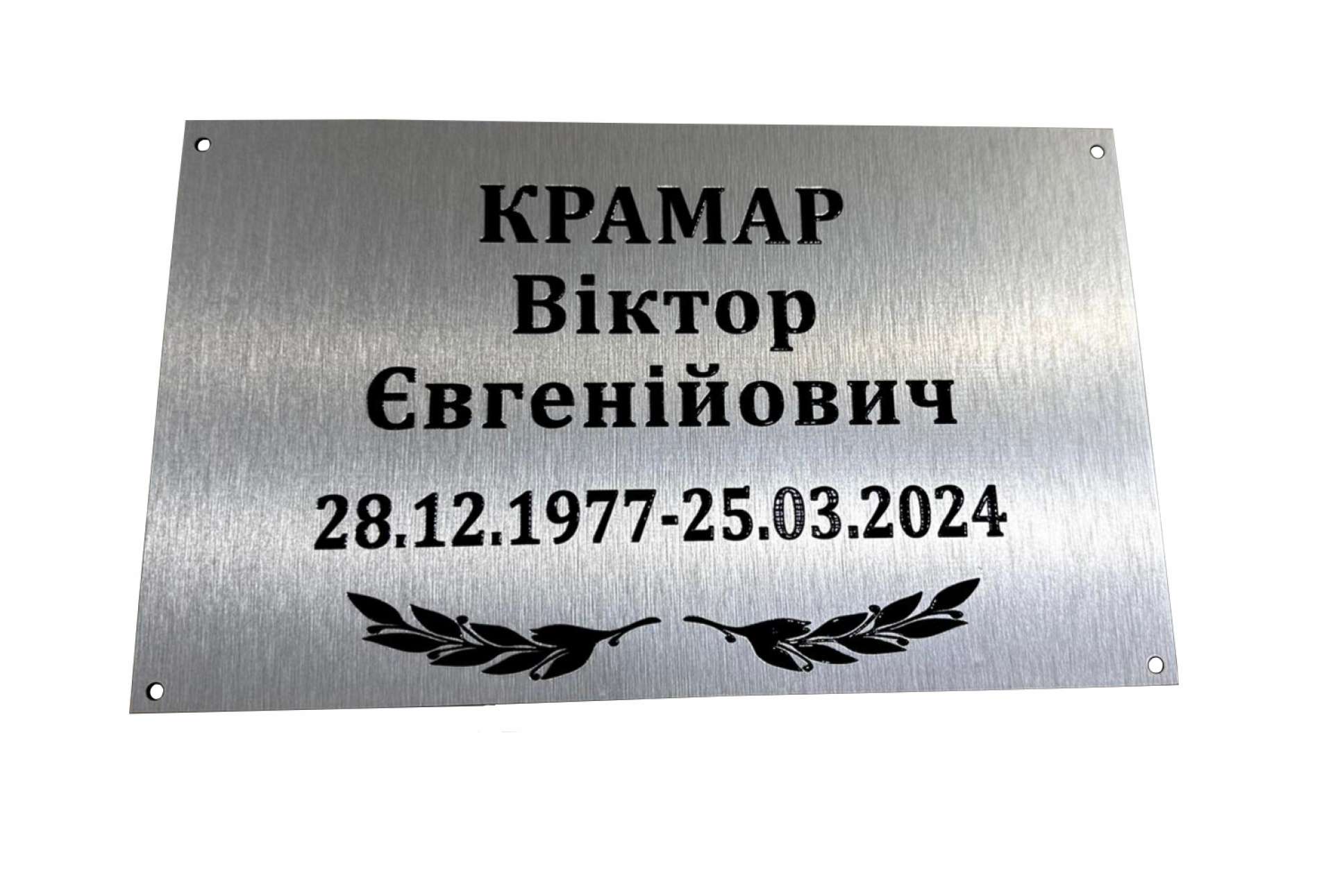 Ритуальна табличка кольорова з композиту на хрест. Текст кольоровий наноситься фарбою. Стійка до погодних умов.