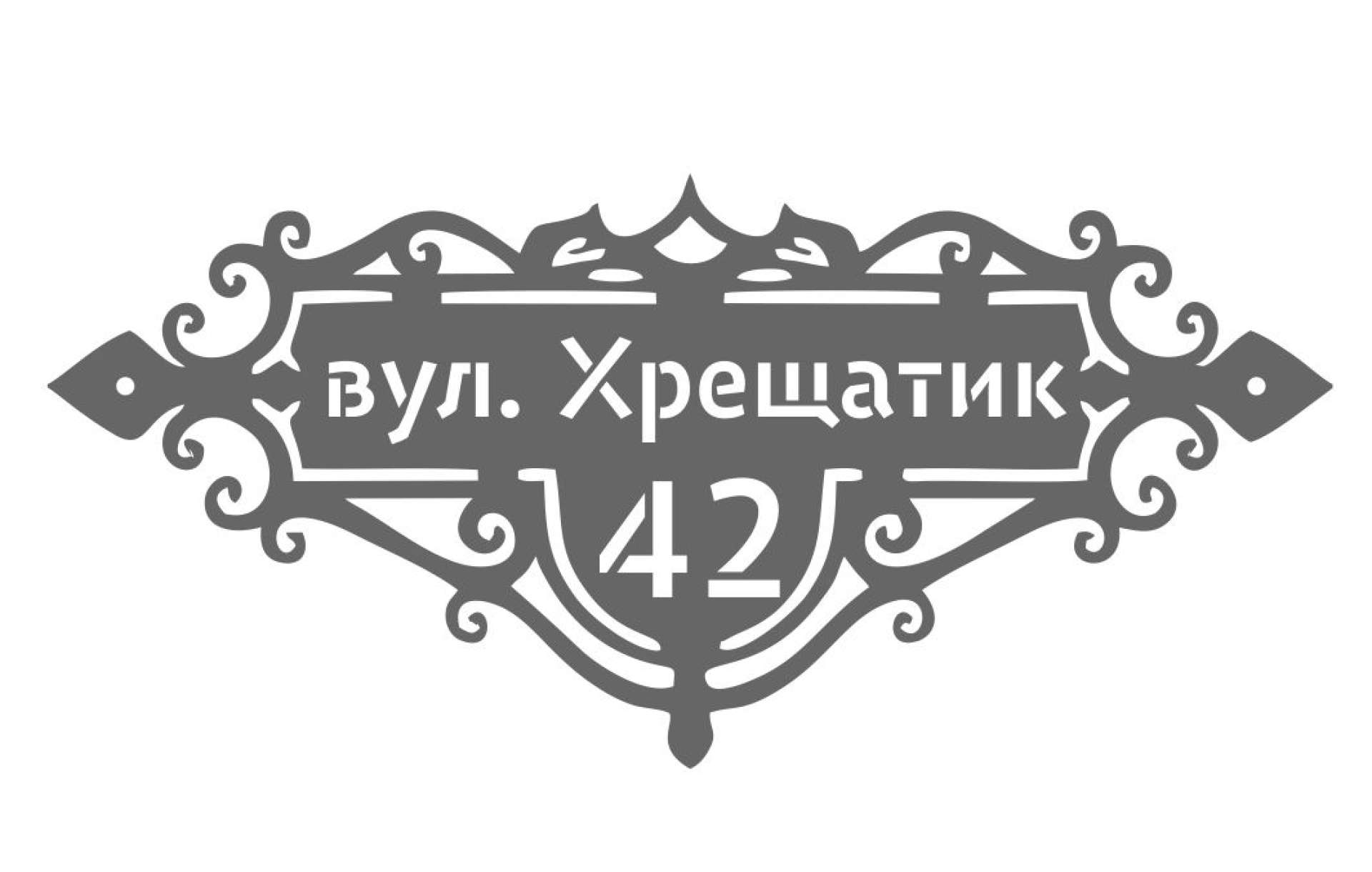 Адресна табличка із металу у Львові. Матеріал нержавіюча сталь. Товщина металу 1 мм.