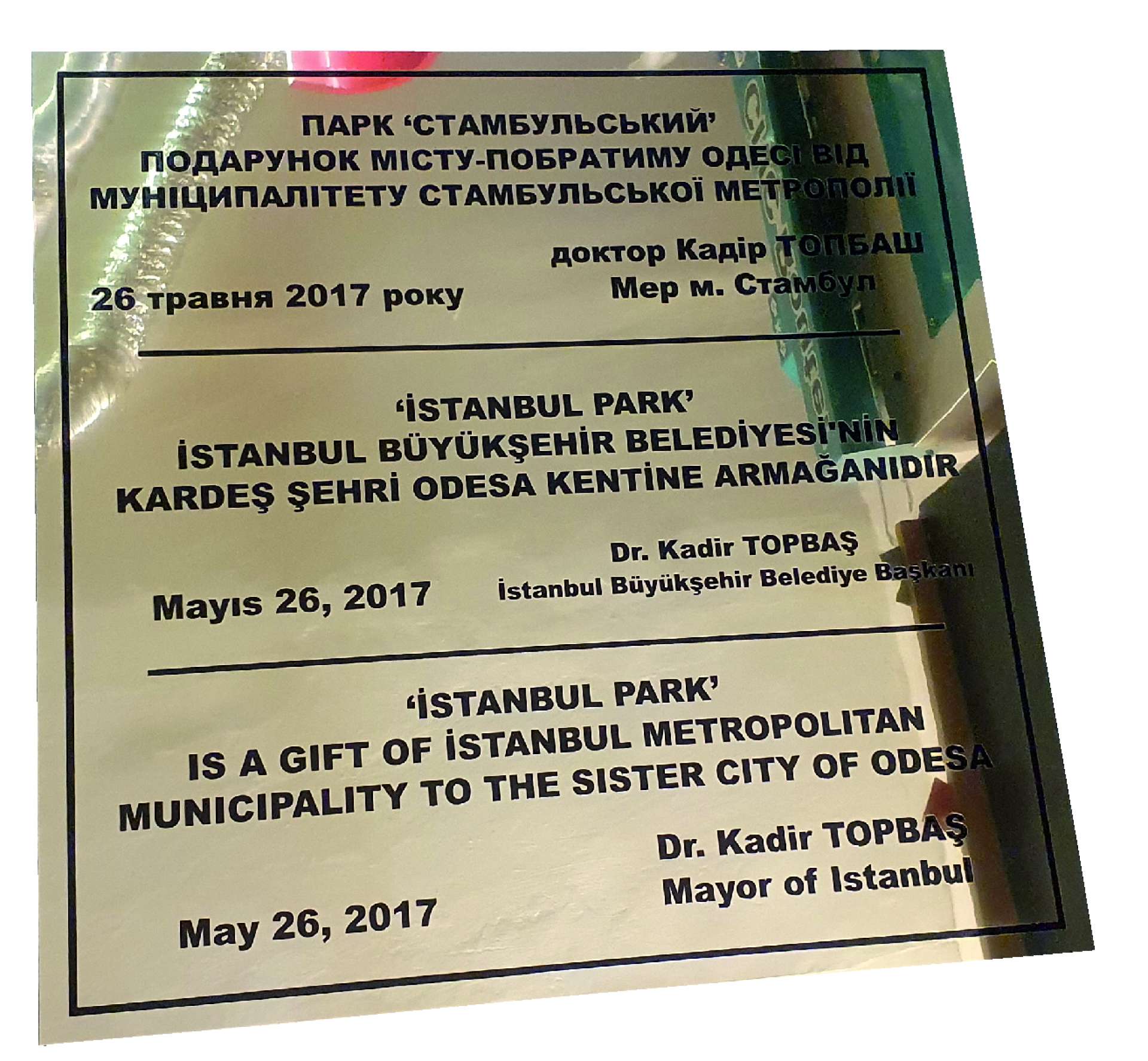 Вивіска з золотого дзеркального композиту. Товщина 4 мм. В наявності є сріблястий дзеркальний та багато інших кольорів. Не вигорає на сонці та стійкий до погодних умов. Виготовлення індивідуальних розмірів.