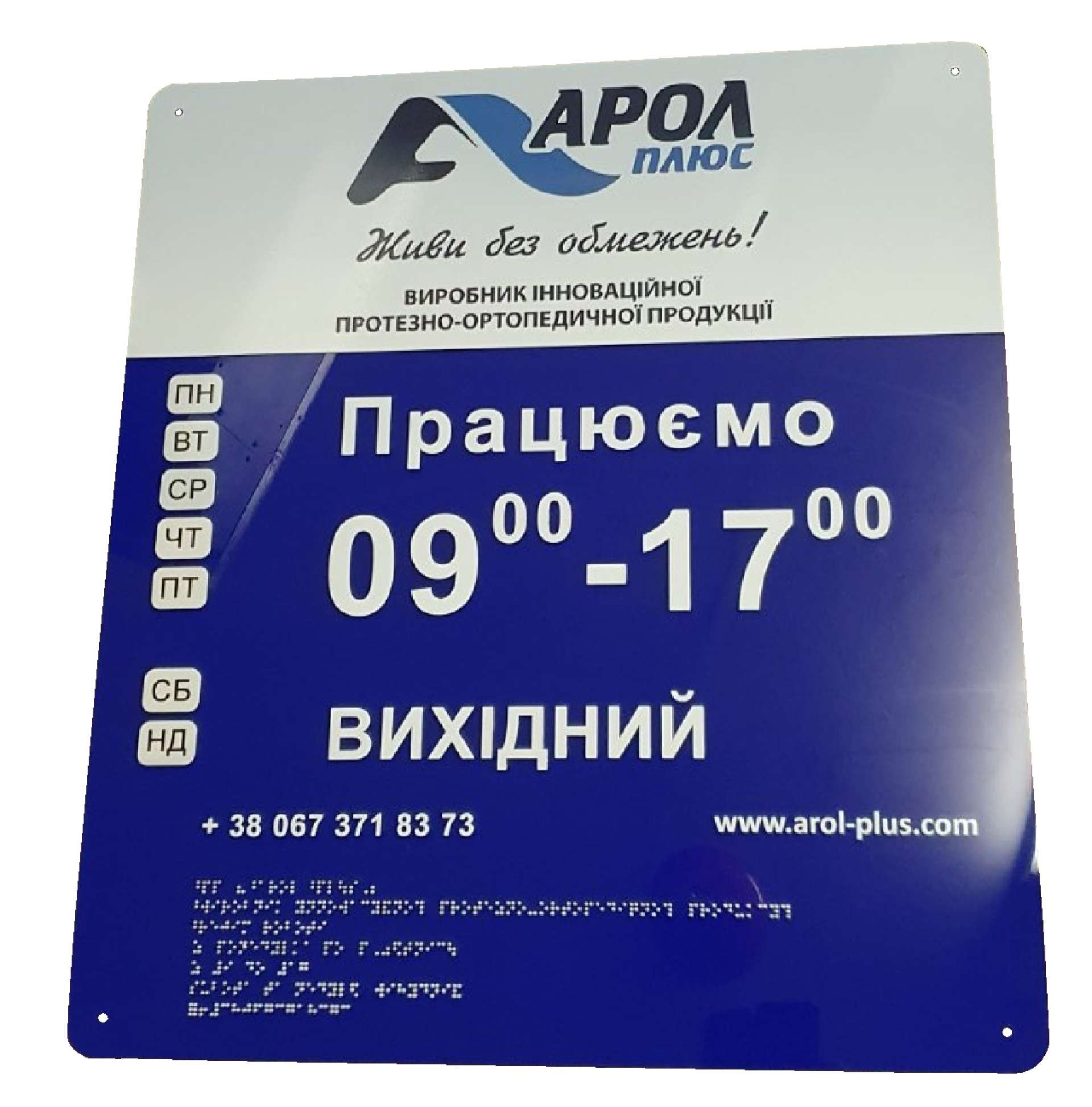 Вивіска зі шрифтом Брайля 800х600